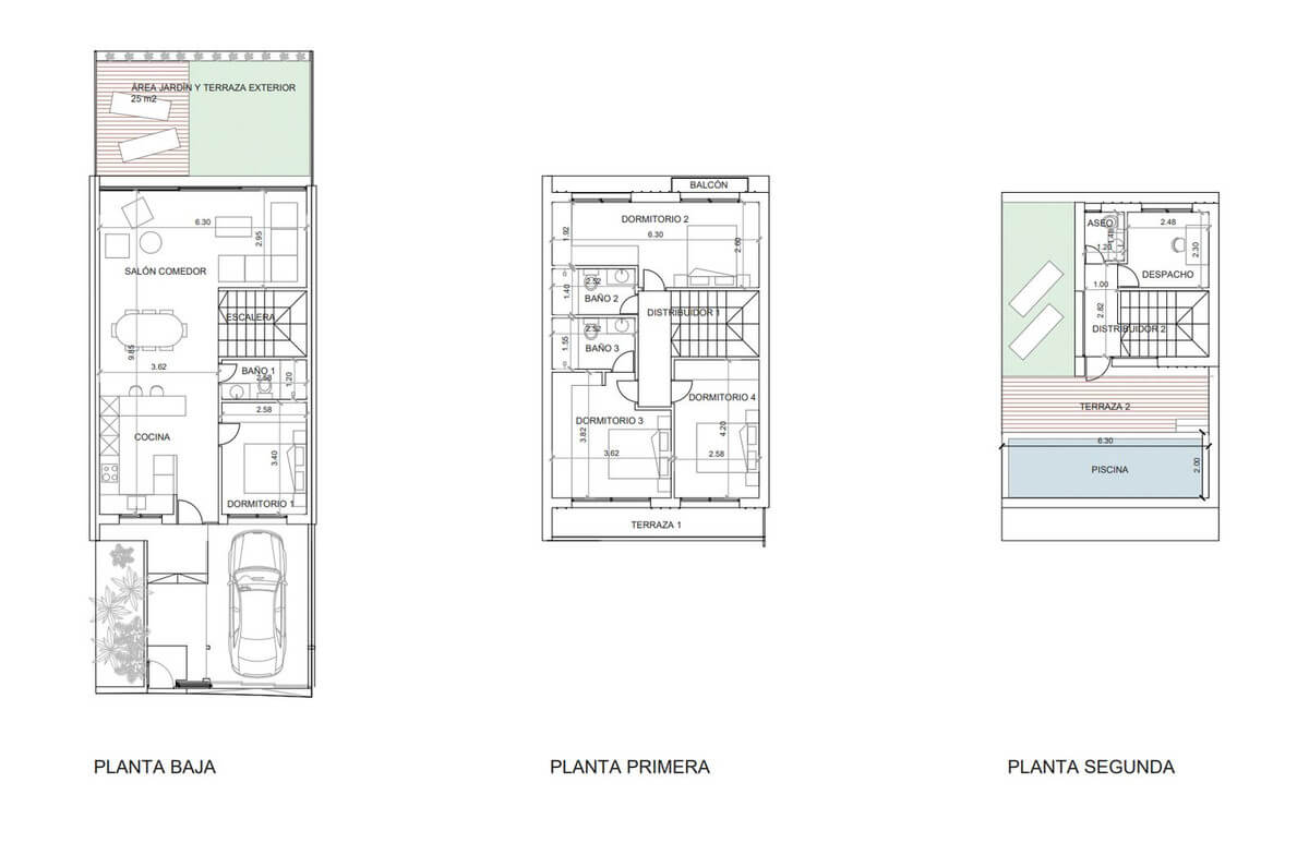 DEL MAR casa adosada cuenta con un diseño contemporáneo, de máxima calidad y grandes ventanales que permiten que la luz inunde la sala de estar, el comedor y la cocina abierta. Las puertas correderas de cristal ofrecen acceso a la terraza. La villa cuenta con una fabulosa terraza en la azotea con piscina privada, ideal para disfrutar de las fantásticas vistas al golf y al mar.
