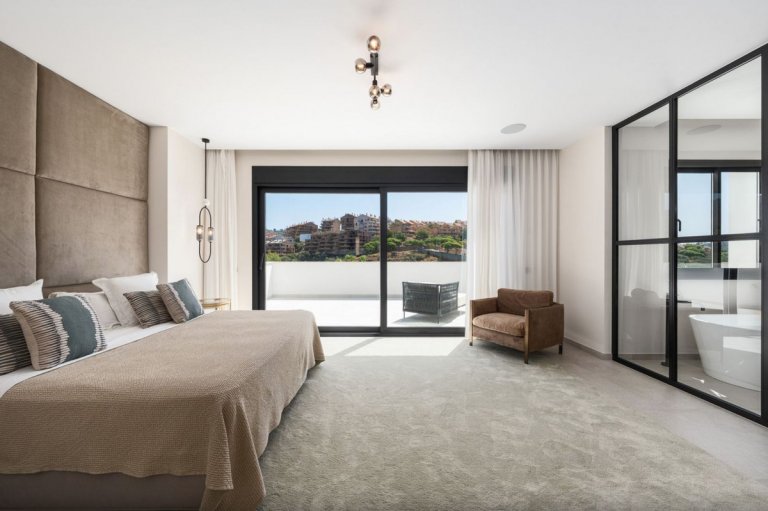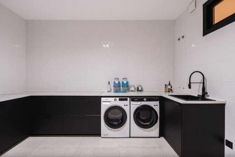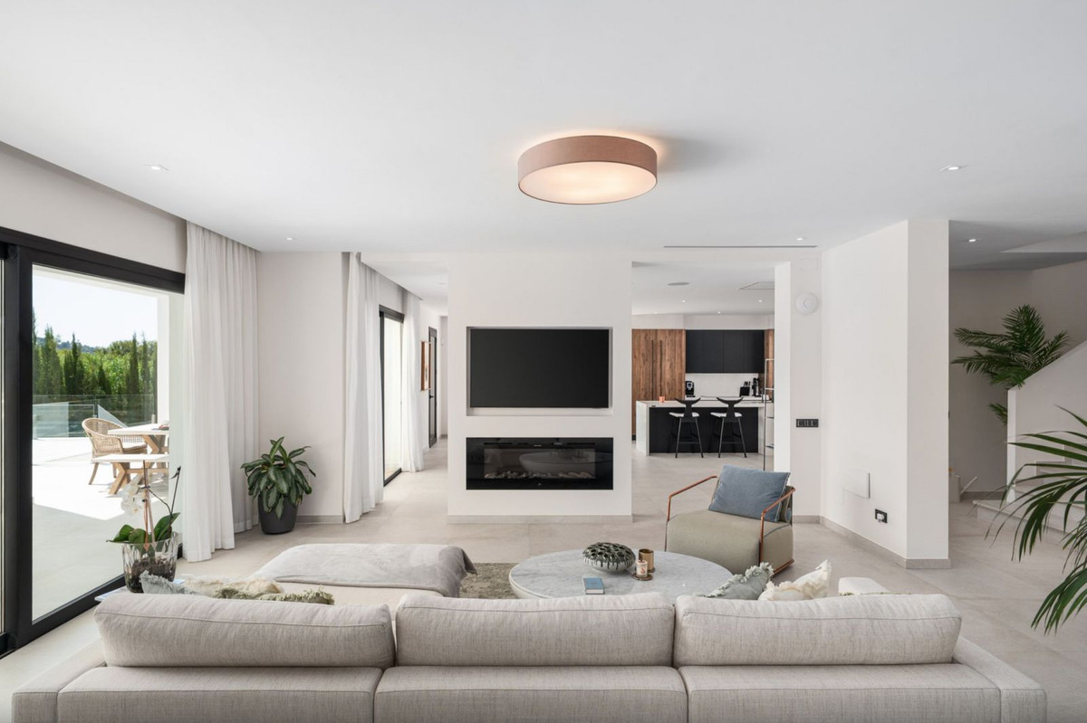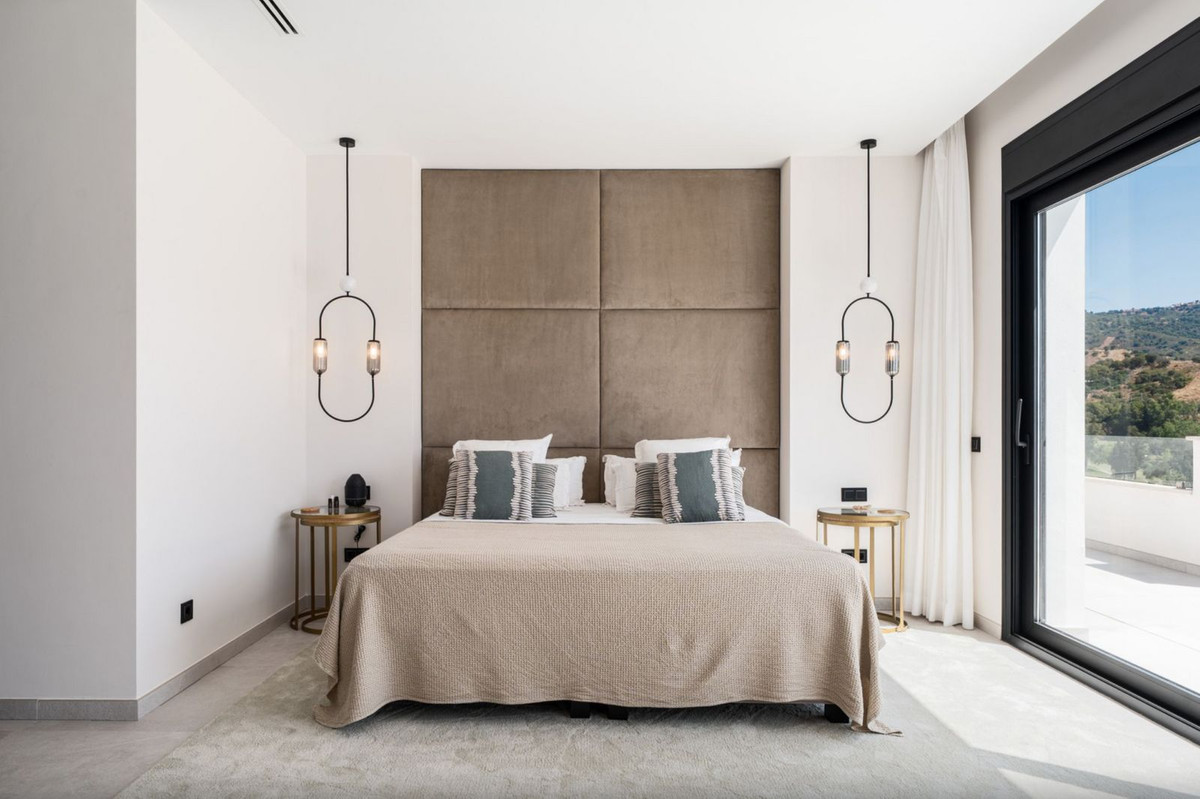 Distribuida en tres niveles, accesibles mediante un ascensor y una amplia escalera, la villa está diseñada para combinar elegancia y funcionalidad. Dispone de cinco habitaciones amplias con baño en suite (tres de ellas en el mismo nivel). El diseño utiliza materiales refinados como piedra cerámica y acabados en madera cálida, todo bajo una visión arquitectónica moderna. Detalles de alta gama como electrodomésticos Miele, paneles solares, persianas eléctricas y un sistema de riego automático destacan la ingeniería inteligente y sostenible de la casa.