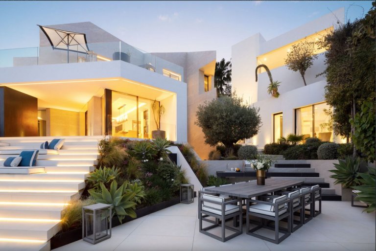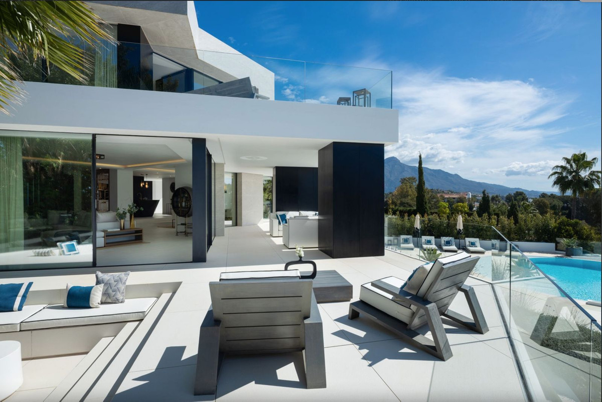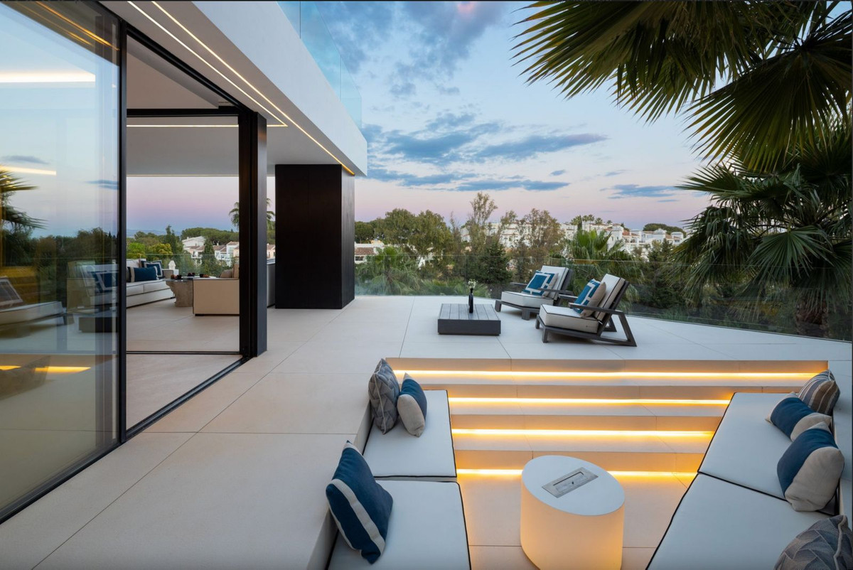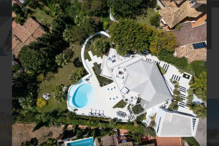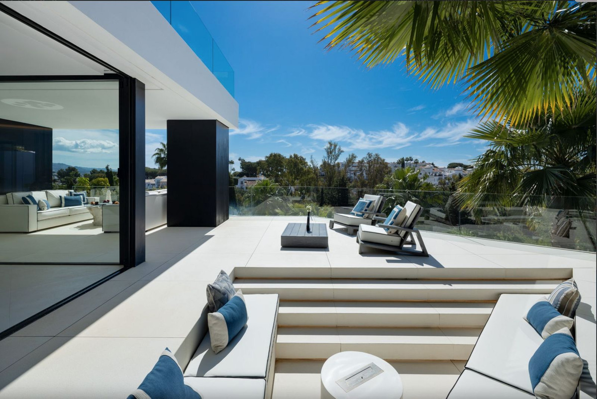 Diseñada por el reconocido arquitecto Antonio Morillo (AMES Architects) y completamente renovada en 2020 por Palmeras, esta propiedad refleja un concepto de lujo actual. Distribuida en tres niveles, la villa cuenta con 555 m² construidos, además de 530 m² de terrazas, sobre una parcela de 1.941 m².