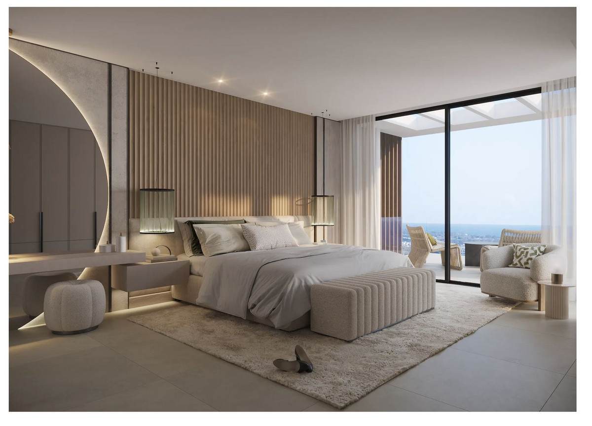 La conception architecturale de la villa est méticuleusement adaptée au terrain naturel, garantissant une distribution optimale de l'espace, maximisant la lumière intérieure et offrant des vues inégalées et dégagées sur l'immensité méditerranéenne.