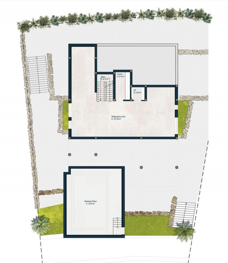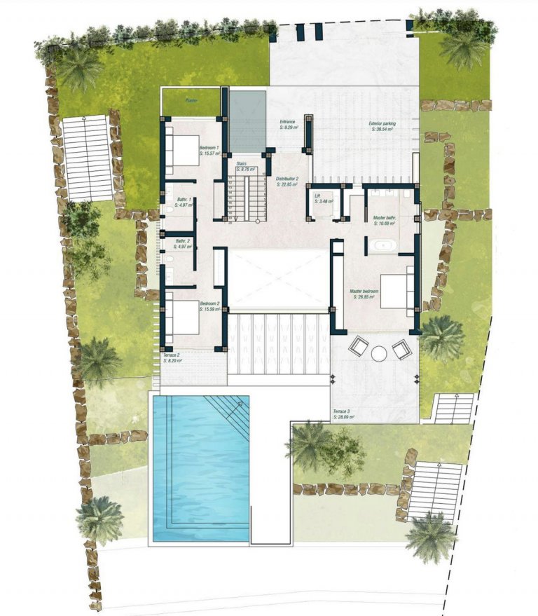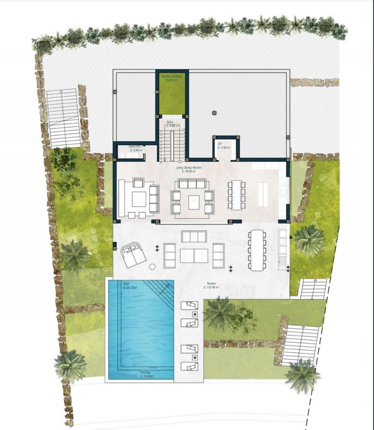 La villa bénéficiera d'un poste de sécurité à l'entrée et de différentes barrières d'accès pour offrir plus d'intimité.