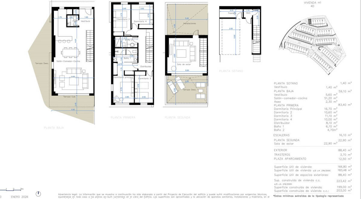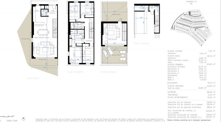 The project comprises 68 terraced houses with 3 and 4 bedrooms, thoughtfully arranged within an exclusive community. All homes are south-facing to ensure maximum natural light throughout the year. Each property features a private garage, terrace, and garden, and many enjoy beautiful sea views. Several units also include basement levels with parking and storage areas.