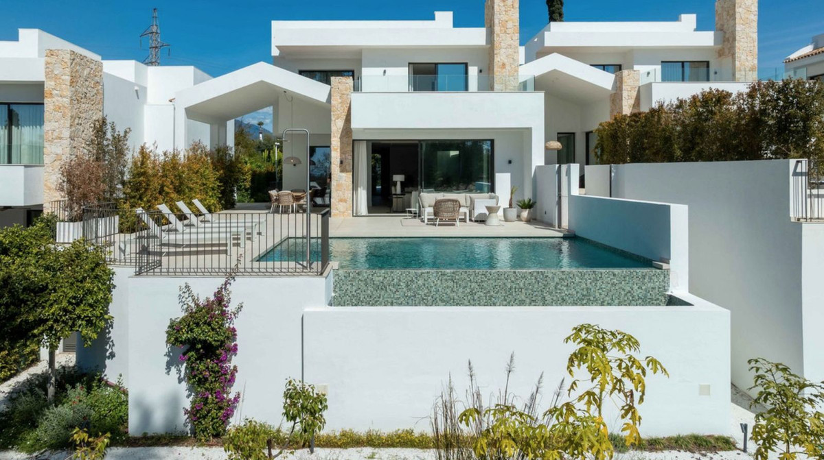 This refined contemporary villa in San Pedro Alcántara is offered for sale at €3,700,000. The property features five bedrooms, four full bathrooms and a guest toilet, with 488 m² of built area and 238 m² of terraces, set on a 526 m² plot. It also includes a private swimming pool, a jacuzzi and…