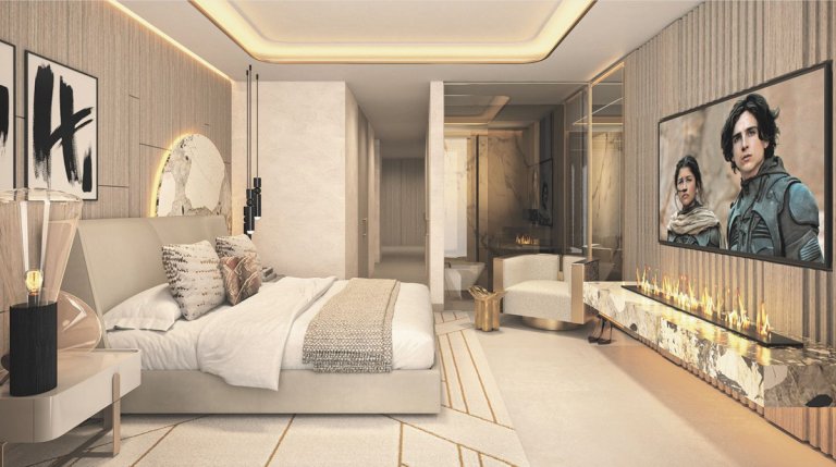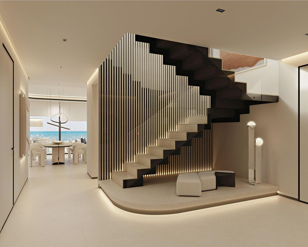 The first floor consists of the lavish master suite, a walk-in closet, a complete en-suite bathroom, and its own terrace, and the two en suite guests bedrooms.